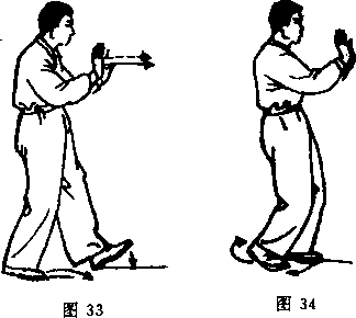跟着地,左腿微屈,仍为右腿实、左腿虚。(图33)