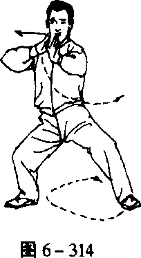 动作2、3与第二十二式“倒卷肱”动作2、3相同(图6-313 ?315,再接图6-312的正面图)。