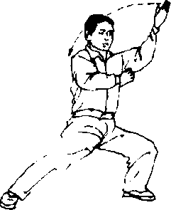 ① 该式是由紧合到大开,此时要求气势下沉;在左转时两膊须 相系,是合中寓开;以后又开,是开中寓合。