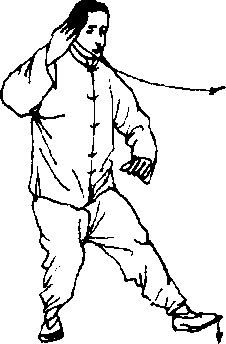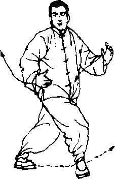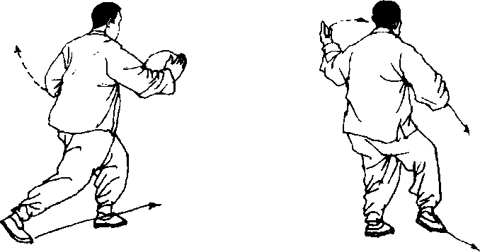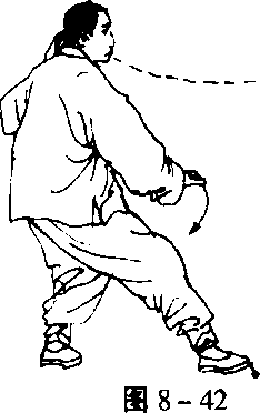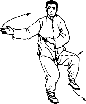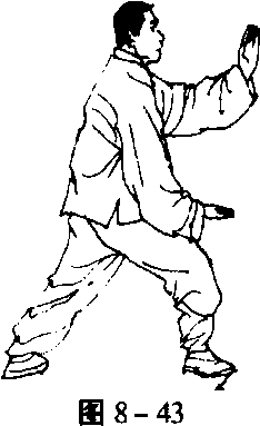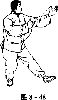 同分动2 “右搂膝拗步”,唯左右相反(图8-44、45、46)。