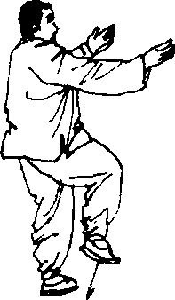 ② 左腿向左迈步要轻灵,两手弧形要走得圆,上下相随一致。