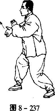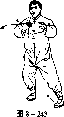 动作和要点皆与第四式“单鞭”相同,惟方向正斜不同(图8 -242 ?245)0