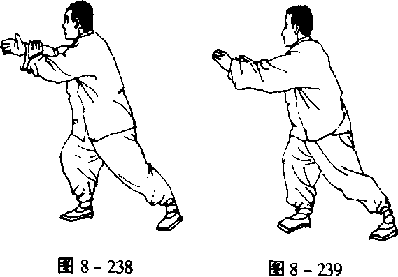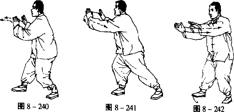 动作和要点皆与第十五式“抱虎归山”相同(图8-231 ~ 241)。