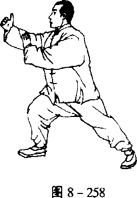 图 8-254图 8-255图 8-256以下动作与第三式“揽雀尾”(一)棚式动作2、3、4相同 (图 8-255 ?258)。