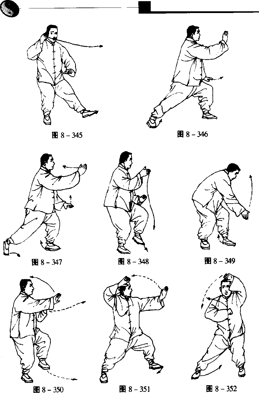 动作1、2与第二十四式“撇身捶”动作1、2相同(图8- —394 —