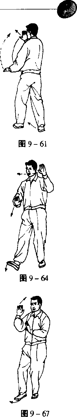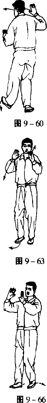 以下同第七式分动2、3、4动作相同,惟方向不同(图9-60、 61、 62)。