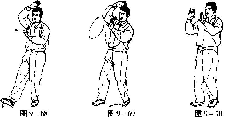 第工十i式接膝拗梦以下与第六式“白鹅亮翅”动作相同(图9-69、7〇h