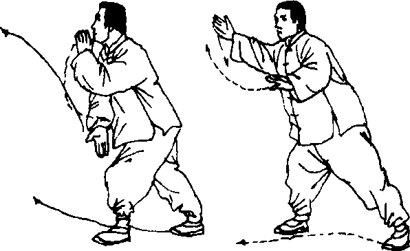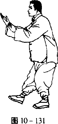 5. 左架推掌 同分动3,唯面向左斜前方。若西南起势,则 此动面东(图10-141)。