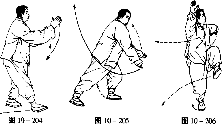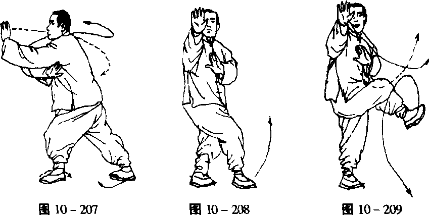 左脚向右侧上步,转身做迎面举,基本同前迎面举(图10- 207) 〇