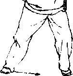 动作过程中,腰要塌住劲,身体保持平稳,动作完成时两腿弯 曲似半月形,大腹与小腿后側约成135度角左右,两肩两跨根始终 松开,腹部也要放松,体内之气不可拙力下压,要以神贯注,身体 外形稍有停顿,内意不停,用意气与下势相连,贯串一气。
