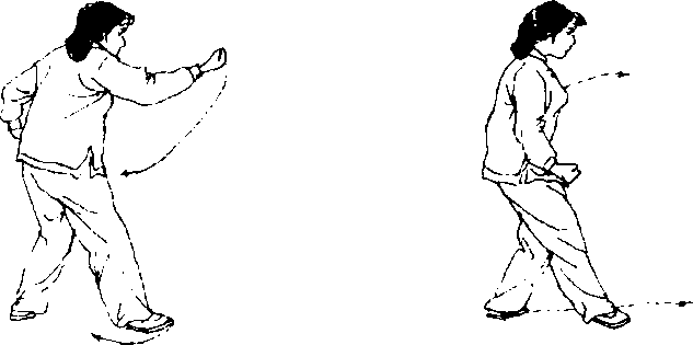 摆,上体右后转体180度,重心移至右脚再复移回左脚,同时,右