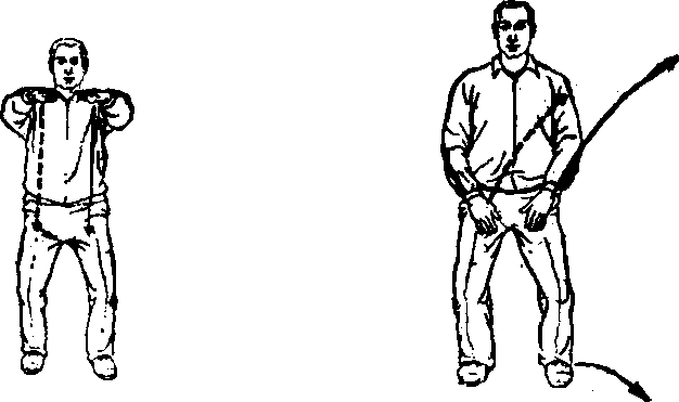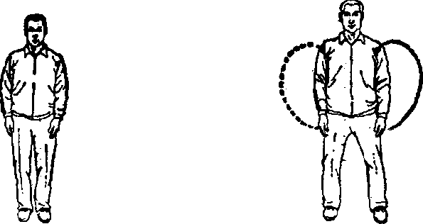图 12_1图 12-2左脚左移一步分开与肩同宽,两脚脚尖朝前(南),头顶(百 会穴)轻轻上领,下须微内收,舌顶上颚,眼睛自然平视,两手自 然下垂在两胯旁,松腰,两膝微曲(图12-2)。