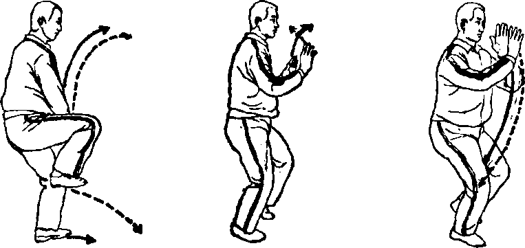 身体向东北方向转动,右脚提起,随身向东北方向踏出一步变