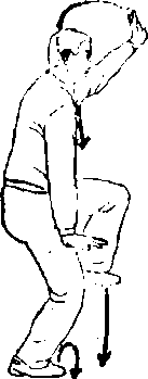 用法:对方用双掌向我正面抓来,我以左掌上堋左领,以右腿 扫其脚,对方即仆跌。