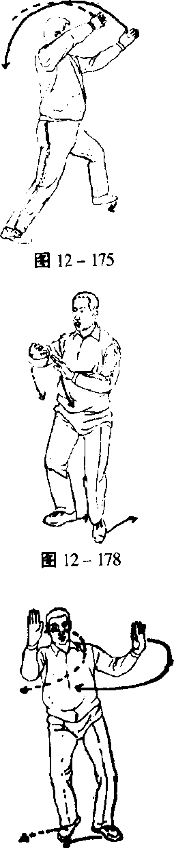 图 12- 169图 12 - 170图 12 - 171图 12- 172重心移到右脚,左脚向左前(东北)一步,手的运转及余下动 作同第三十一式(图 12-175、176、177、178)。