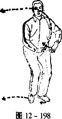 按至腹前。右拳内旋转拳心向下按与左拳同高。眼向西南平视(图 12-202)。