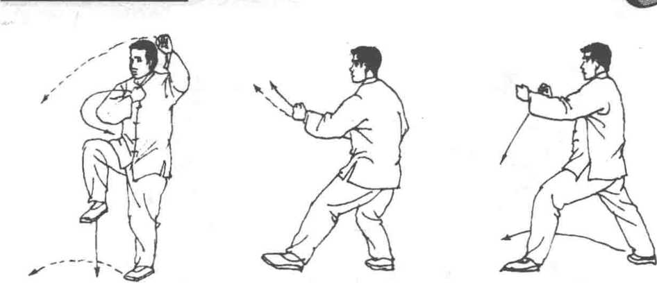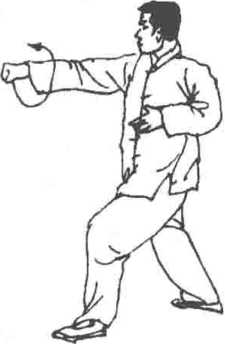 的作用。同时,这是练习抖劲的一个必要拳式。初学时,抢两个大 圈后,方始发出抖劲,以后可以渐抡渐小,逐步减到一个圈;最 后,只要意念一发动,就可同样地发出抖劲。这是发出抖劲的最深 功夫。