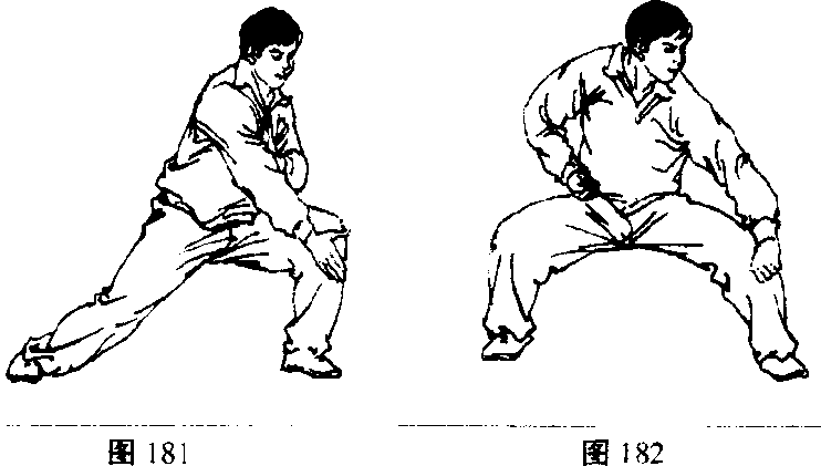 4 .此动作反复练习几次.然后换做左势(图181. 182), 左右势轮换练习。