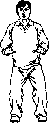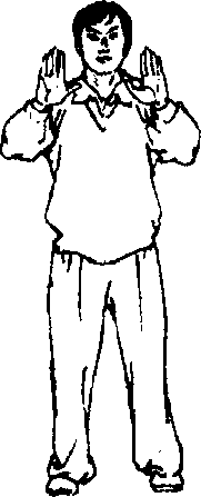 两脚平行开立,两手徐徐前平举,手和脚皆同肩宽,上体 保持自然松正(图183)。
