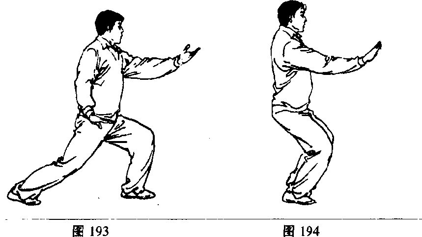 10 .左脚向前上步成左野马分鬃势(图193)。如此左右 交替进行练习°