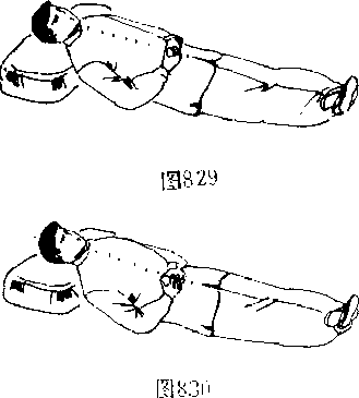 说明:上述四种卧法除手型外,其余相同.但对手掌要 求,都须掌心对“丹田”处,并行小循环功或大循环功(可参后 述兀