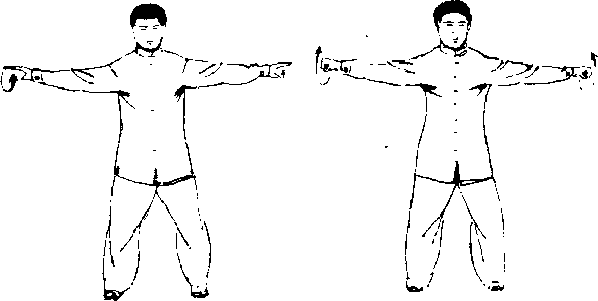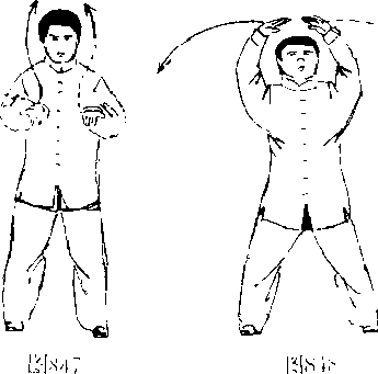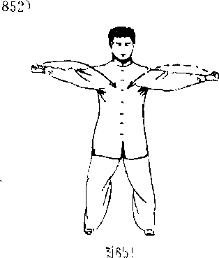 6 .身势不变,只两拳句上翻转,拳心朝上,两臂乎举不动. (图 851)
