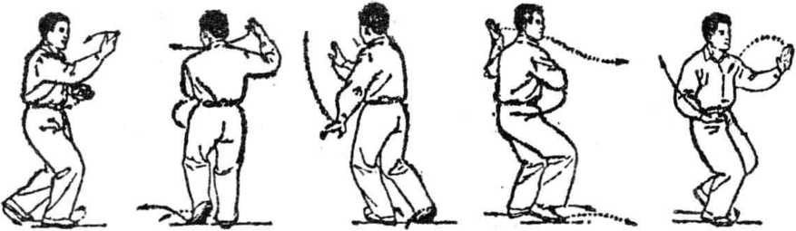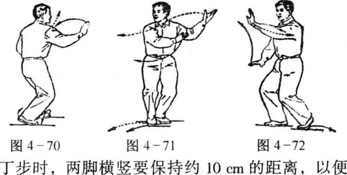 于转动。转动时,体重置于两脚间,转身后重心移向后腿,保证 转动灵活。整个动作要做得既轻灵又沉稳。