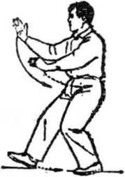【要点】 定式时,两臂轻轻沉合,注意正头、竖颈、松腰、 沉肩,上体正直,方向转为正西。