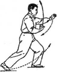 合腰部的轻轻旋转。撑掌时,上体保持正直,头向上顶,全身要 松沉。
