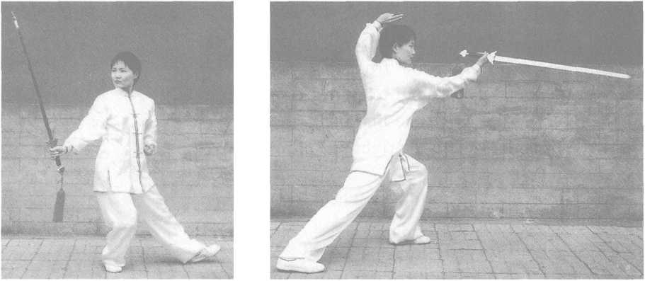 ? When stabbing, the sword is not stabbed from the waist, but rather is swung in an arc from the side of the body to the front, as in holding the sword with both hands (pengjian 捧剑).