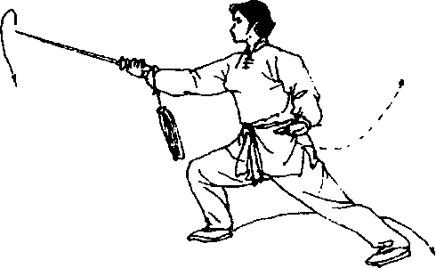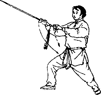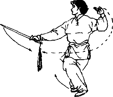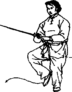 ② 肩、肘要松活,以腰带臂,眼随剑走,运劲沉稳不断。