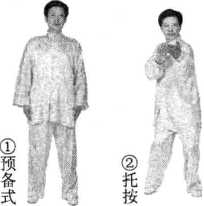 (1)重心右移,身体右转,左臂向上划弧托起,与胸同高,同时右手随即屈肘 向上托起,内旋按掌,两手成托球势(图3-3 —6②)。