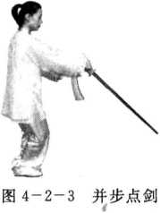 上前并步,屈膝点剑(图4-2-3)o