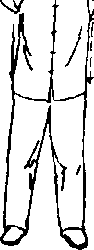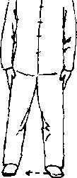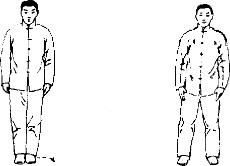 (1) 两脚平行分开,与肩同宽,身体中正自然,两手 臂松垂,手指轻附两腿外侧,目视前为。(图1T、9)