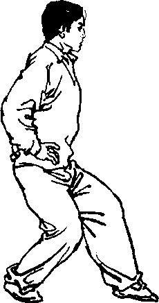 2 .注意屈腿落胯,膝关节松活,稳固下肢,放松上体。