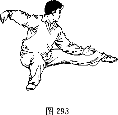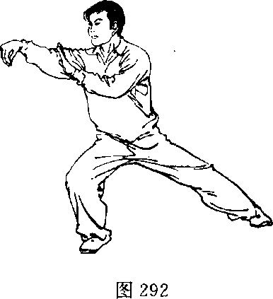 2 .右腿向下屈蹲,左脚沿地面向左侧伸出(图292)。