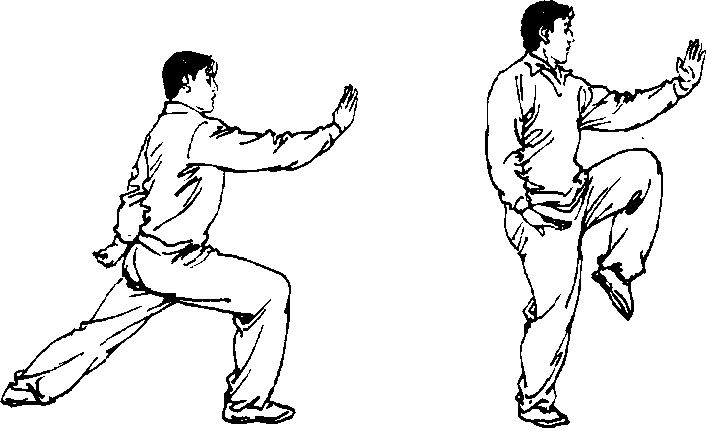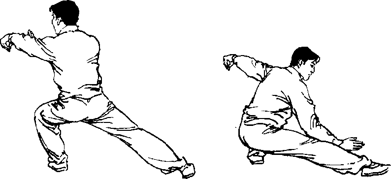 1 .此势为高低两种步型的转换练习。应做到步型准确,重 心稳定,变转柔顺,动作连贯、圆活。