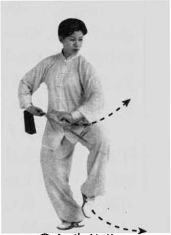 此外,转身下刺难度较大,要抽出多练。我在上面提到的 呼吸是以开吸合呼为基础,在套路演练过程,不免有拳势呼吸 的转换,所以上面的呼吸提示是个人意见。练习者应以自己的 习惯去配合,特别是初学者应先注重姿势的要求,当动作连贯 后,再配合细均深长的呼吸,体会太极剑的乐趣。