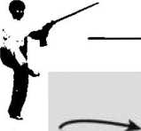 提示:注意斩剑与斜削剑、平崩剑的区别。斩剑力点在 剑刃。平剑向右斩时,要与转身落步(成横裆步)同时进行。横 裆步两脚应平行或略成八字,开跨圆裆,上体微右转。