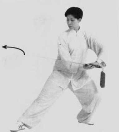 绞剑,左手剑指动作不变。