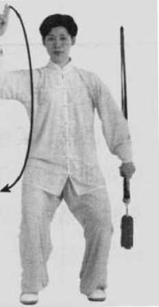 要点:接上动,继续呼气, 收脚收剑同时到位,准备下动。