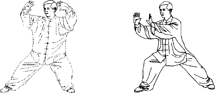 右腿向右侧稍前上步,两手朝上步方向推出,目视前方。|太极拳养生探微