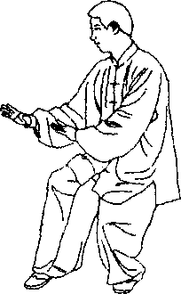 一、右手变掌,身体右转90° ,朝向改变,两手先外旋上托, 再内旋翻掌下压,右腿回收成虚步踮于左腿侧前;|太极拳养生探微