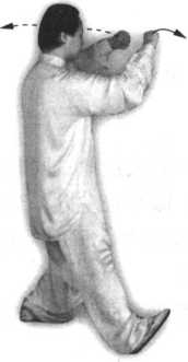 要点:与右蹬脚式相同,只是左右相反。左蹬脚方向与右蹬脚成180。(即 正西偏北,约30。)。