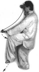 要点:身体要先向右转,再向左转。完成姿势时面向正西。上体不可太前 倾,避免低头和臀部外凸。左腿要微屈。