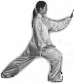 要点:上体自然正直。右拳要松握。右拳回收时,前臂要慢慢内旋画弧, 然后再外旋停于右腰旁,拳心向上。右拳向前打出时,右肩要随拳略向前引, 沉肩垂肘,右臂要微屈。弓步两脚跟的横向距离同“揽雀尾”,即约10厘米。
