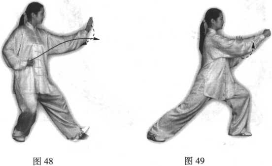 心向上;眼看左手(图48)。