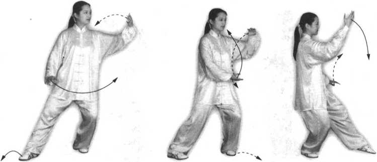 动作和要点均与前“左搂膝拗步”式相同(图90?93 )0动作和要点均与前“左搂膝拗步”式相同(图90?93 )0