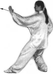 要点:完成姿势上体自然正直,松 腰、松胯;左臂不要完全伸直,背部肌 肉要伸展开。推掌、举掌和弓腿动作要 协调一致。弓步时两脚跟的横向距离同 “揽雀尾”,即约10厘米。