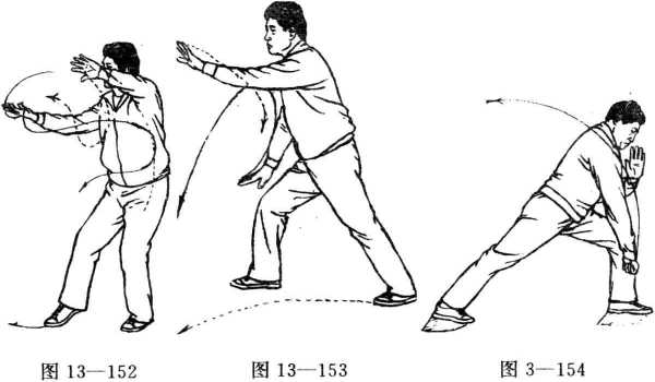 3. 重复左右搂膝拗步各一遍(见图13—151, 152, 153)。